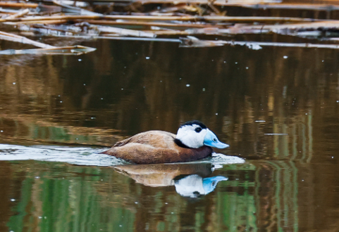 “There’s a white-headed duck,” she whispers, pointing to the endangered bird that breeds nowhere else in the country. Its striking blue beak is luminous in the morning light.